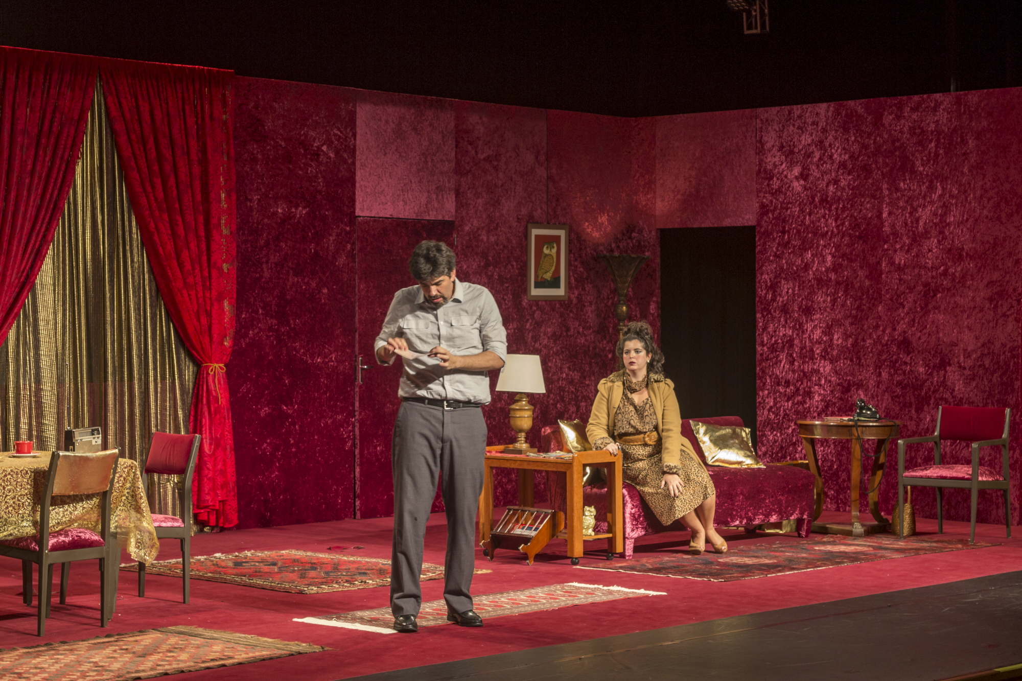 A peça conta a história de uma família de classe média dos anos 80 que ambiciona ganhar na loteria. A diretora da peça Luciana Ramanzini buscava um ambiente que representasse algo entre o kitch e o decadente. A imagem de uma casa completamente revestida em veludo logo veio à tona, exagerando o uso de carpete, elemento bastante difundido nas casas de classe média brasileiras décadas atrás. Ao longo da peça elementos dourados surgiam com a interação dos atores, representando a ascensão financeira da família.